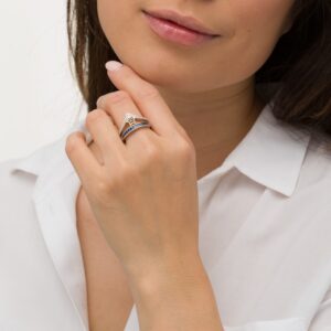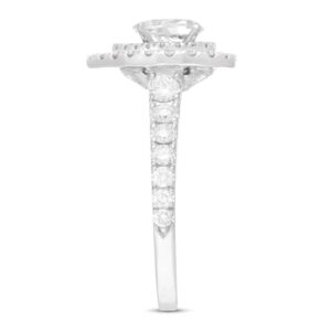 A gorgeous symbol of your love, this sparkling bridal set from features an engagement ring with a romantic heart-shaped diamond haloed by glimmering round diamonds. The band and matching wedding ring are adorned with twists of round diamonds, bringing the total weight of the set to 7/8 carat. The ring is styled in 14K white gold.